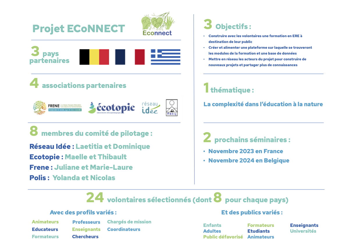 Nos partenaires étaient Ecotopie en Belgique, le FRENE et Polis, respectivement les réseaux français et grecs des acteurs de l’éducation relative à l’environnement.