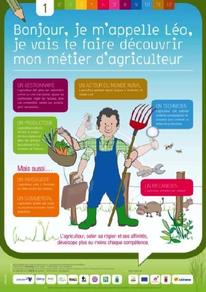 Ces 12 affiches ont pour but d'expliquer aux enfants de 6-12 ans le métier des agriculteurs. Elles passent en revue ses dif...
