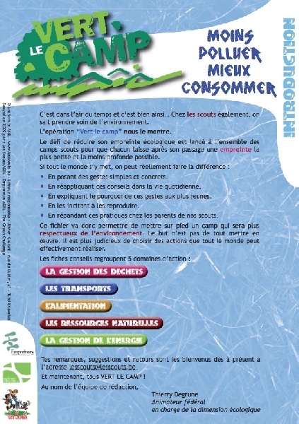Chez les scouts également, on sait prendre soin de l'environnement. L'opération "Vert le camp" nous le montre. Via cet outi...