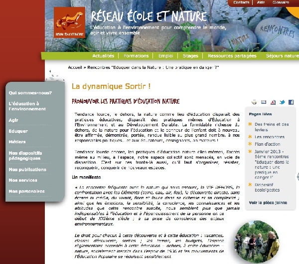 En vue de promouvoir les pratiques d'éducatin à la nature, le Réseau Ecole et Nature (France) anime le groupe de travail "S...
