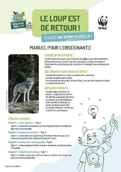 Le Service éducatif du WWF propose des outils pédagogiques (dossier, CD, site web...) pour le primaire et le secondaire sur diverses thématiques (biodiversité, climat, milieu marin, empreinte écologique...). Des animations en classe (sur la biodiversité, l'empreinte écologique, la protection de la nature, et sur le WWF) sont possibles via les volontaires éducatifs.